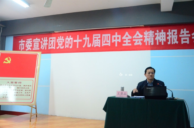 11月30日,市委宣講團(tuán)成員,市生態(tài)環(huán)境局黨組成員、副局長(zhǎng)王景志來到公司,為黨員代表和骨干管理者代表宣講了黨的十九屆四中全會(huì)精神。
