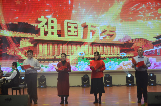 詩朗誦《彩繪的中國》(王榮梓、張衛(wèi)紅、文峰、王新東;鋼琴伴奏:齊舞飛揚(yáng)       歌伴舞《奔跑》(王東、王巖軍;伴舞:員工子女)舞蹈《天天向上》( 張永生、朱俊名、李曉英、竇吉鵬)