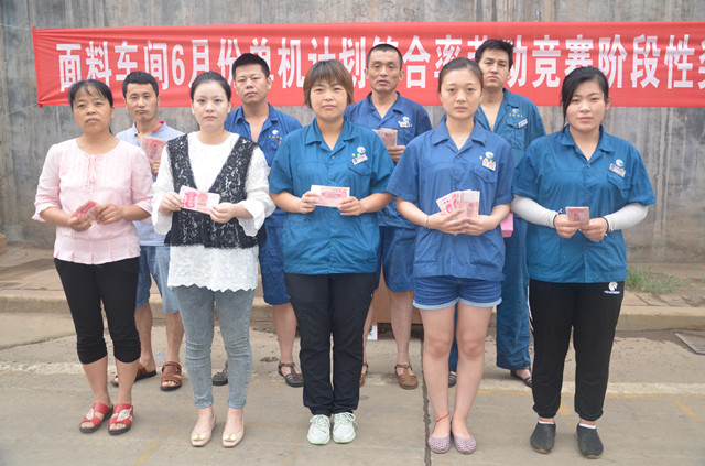 收到獎(jiǎng)勵(lì)金的員工們臉上洋溢著喜悅。“收到勞動(dòng)競(jìng)賽獎(jiǎng)勵(lì)非常開(kāi)心,我們一定會(huì)再接再厲,為染好每一米布而努力!”面二車(chē)間5#打底機(jī)組組長(zhǎng)程建龍說(shuō)到。面料車(chē)間主任曹劍總結(jié)到:“此次階段性競(jìng)賽獎(jiǎng)勵(lì)的發(fā)放,主要是對(duì)第一階段完成獎(jiǎng)勵(lì)的表彰,也是為6月份中、下旬再接再厲的發(fā)動(dòng)。希望大家在已有成績(jī)基礎(chǔ)上,繼續(xù)戰(zhàn)高溫、斗酷暑,全力以赴,再創(chuàng)新佳績(jī)。”