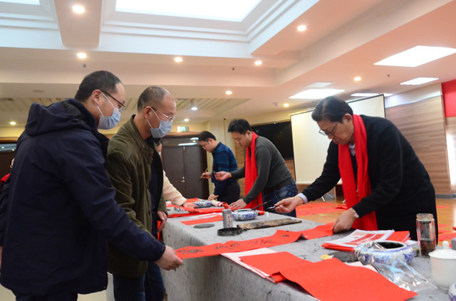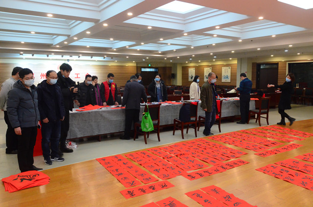 活動中,市總工會黨組成員、副主席戴新生為到場的企業(yè)職工和勞模代表,分發(fā)了現(xiàn)場書寫出的墨寶以及印制的春聯(lián),并向全市廣大企業(yè)職工送上新春祝福。