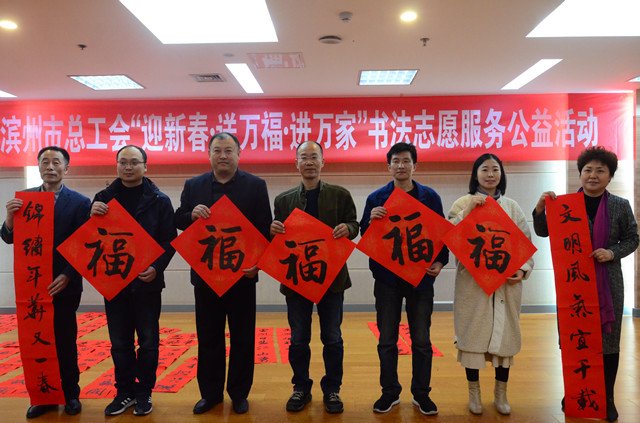 1月29日,市總工會在市職工活動中心舉行“迎新春 送萬福 進(jìn)萬家”書法志愿服務(wù)公益活動舉,邀請到市書法家協(xié)會的5位書法家現(xiàn)場書寫春聯(lián)、福字。公司勞模代表和職工代表與渤?;钊?、交運集團(tuán)的代表一道,參加此次活動。