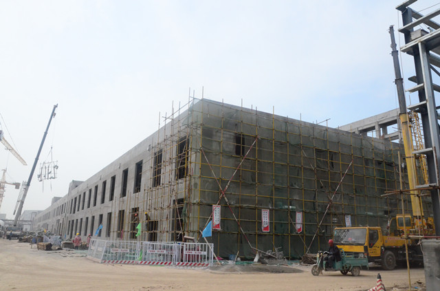我們在王平帶領(lǐng)下,在新廠房外圍參觀了一遍。他邊走邊說,面料車間整體完成進(jìn)度85%,車間主體工程已經(jīng)建設(shè)完成,設(shè)備基礎(chǔ)在緊鑼密鼓的建設(shè)中,預(yù)計6月底整體達(dá)到投產(chǎn)狀態(tài),8月底完成全部搬遷;家紡車間整體完成度80%,車間主體工程已經(jīng)建設(shè)完成,鋼結(jié)構(gòu)工程在加緊安裝中,預(yù)計6月底整體達(dá)到投產(chǎn)狀態(tài),8月底完成全部搬遷;服裝車間整體已經(jīng)全部完成,達(dá)到了整體搬遷條件;污水處理整體完成度95%,車間主體工程已經(jīng)建設(shè)完成,脫水機(jī)房工程尚在緊張建設(shè)中,預(yù)計4月底可投產(chǎn)運行;食堂主體完成度95%,一二層主體工程已經(jīng)建設(shè)完成,預(yù)計在3月底能達(dá)到投產(chǎn)狀態(tài),三層尚在緊張裝修中,預(yù)計4月底能達(dá)到投產(chǎn)狀態(tài);助劑加工車間、紙管廠完成度65%,主體工程已經(jīng)基本建設(shè)完成,預(yù)計6月份達(dá)到投產(chǎn)狀態(tài)。