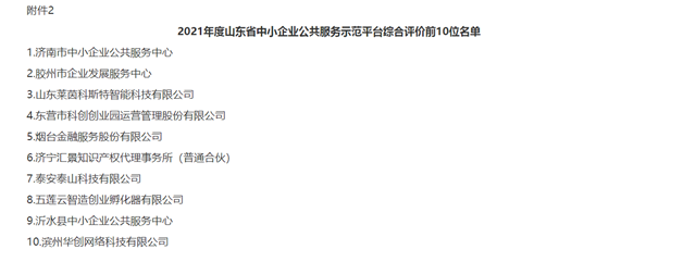 導(dǎo)讀:日前,“2021年的山東省中小企業(yè)公共服務(wù)示范平臺(tái)綜合評價(jià)”結(jié)果出爐,華創(chuàng)網(wǎng)絡(luò)科技有限公司等10個(gè)中小企業(yè)公共服務(wù)示范平臺(tái)列綜合評價(jià)前10位。