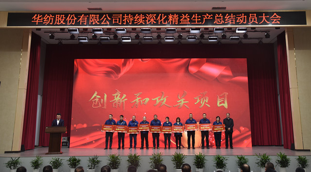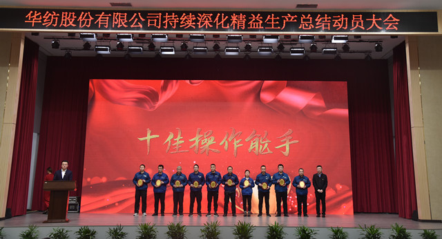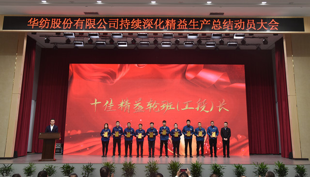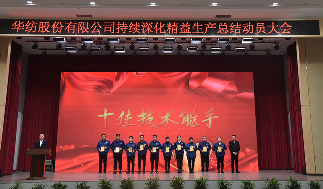 會上,公司董事長盛守祥為2021年度優(yōu)秀團隊、勞動模范頒獎;總經(jīng)理閆英山為華紡工匠、十佳精益輪班(工段)長、十佳技術(shù)能手、十佳操作能手、優(yōu)秀員工代表頒獎;質(zhì)量總監(jiān)李風明為優(yōu)秀CQI項目、創(chuàng)新攻關(guān)項目、優(yōu)秀精益機組代表頒獎。公司對在過去一年的“我與效益提升”工作中表現(xiàn)良好的原料運營公司等10個部門給予了通報表揚;“退城進園”暨“智能綠色工廠建設(shè)項目”整體建設(shè)與搬遷,成為“2021-華紡年度感動”內(nèi)容。
