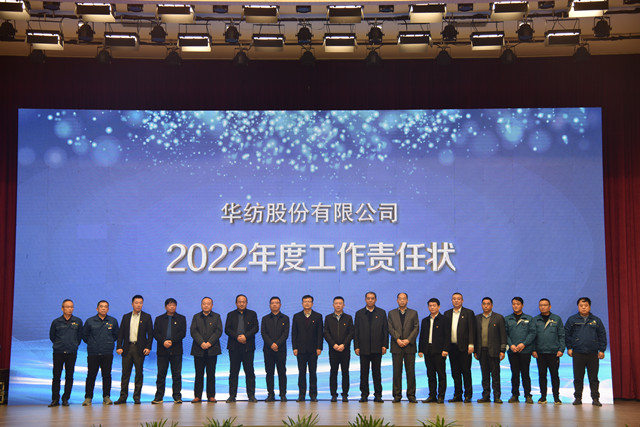 工作責任狀簽訂儀式上,盛守祥依次與總經(jīng)理閆英山、質(zhì)量總監(jiān)李風明、總工程師羅維新、安全總監(jiān)孫中然、財務總監(jiān)劉水超、法務總監(jiān)趙玉忠、人力行政總監(jiān)孫玉濤、董事會秘書丁澤濤,服裝面料分公司總經(jīng)理王超、花布分公司總經(jīng)理張力前、家紡分公司總經(jīng)理成如海、面料車間主任曹劍、花布車間主任劉國鋒、家紡車間主任王旭洲、服裝車間主任晁金光、家紡成品車間主任董魯波,簽訂《2022年工作責任狀》。閆英山分別與王超、張力前、成汝海及各分公司所屬車間主任曹劍、晁金光,劉國鋒,王旭洲、董魯波,簽訂《2022年工作責任狀》。大會由團委書記陳冰主持。