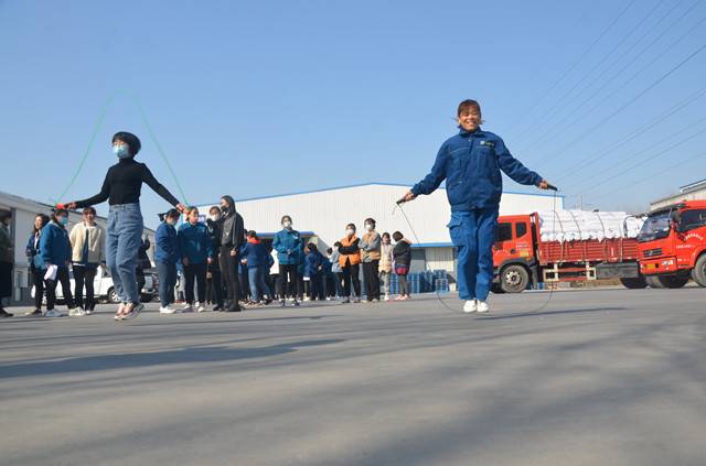 本次趣味運動會設有4個比賽項目,分別為5人拔河、兩人三腿跑、單人跳繩、踢毽子,公司眾多女職工踴躍報名參加比賽。廣大女工歡聚一堂,提前來到各項目區(qū)域進行賽前準備和熱身,活動還沒開始,現(xiàn)場氣氛就已經(jīng)“燃”起來了。比賽開始后,現(xiàn)場口號聲、加油聲交織在一起,將活動的氛圍推向了高潮。
