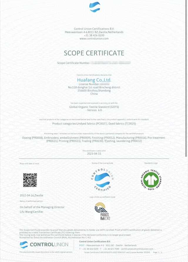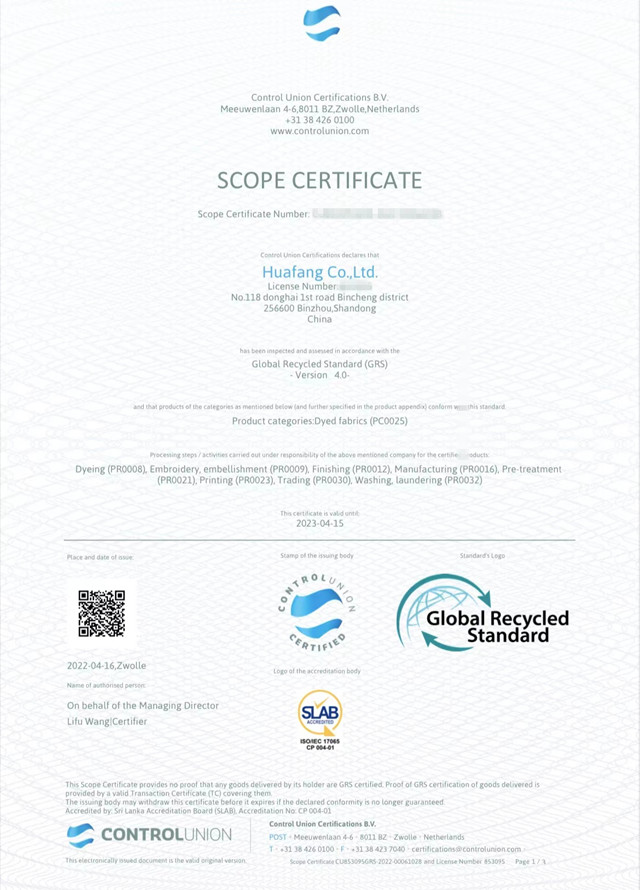 導(dǎo)讀:公司于3月份通過(guò)權(quán)威機(jī)構(gòu)的現(xiàn)場(chǎng)審核,順利取得GOTS/OCS/GRS證書(shū)。