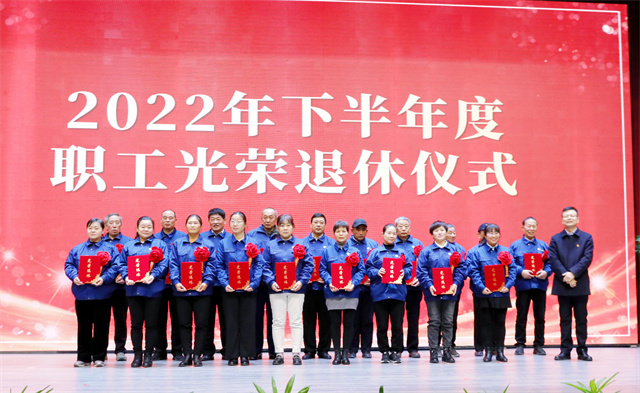 會(huì)上,公司黨委委員、人力行政總監(jiān)孫玉濤宣讀了2022年下半年度退休職工工作簡(jiǎn)歷,盛守祥為退休員工代表頒發(fā)榮譽(yù)證書。退休員工劉志軍代表29位退休同志做表態(tài)發(fā)言。他表示,華紡陪伴和引領(lǐng)著我們一路向前,為我們每位員工提供了成長(zhǎng)的平臺(tái),退休是人生新階段的開始,會(huì)努力保持樂(lè)觀的心態(tài),繼續(xù)關(guān)注和支持華紡事業(yè)的進(jìn)步與發(fā)展,并努力為公司發(fā)展、社會(huì)進(jìn)步做力所能及的事情。