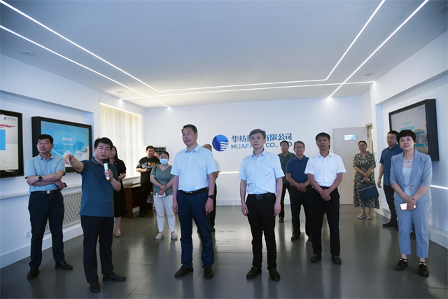 隨后,在孫玉濤的陪同下,盧飛一行先后參觀了智云中心、檢測中心、財(cái)務(wù)部、集中辦公區(qū)、面料公司、家紡公司、花布公司、家紡研發(fā)、研究院等處。