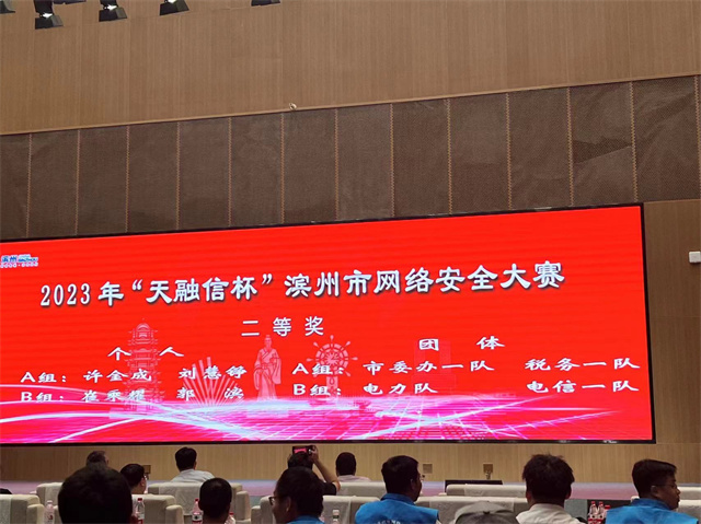 7月21日,2023年“天融信杯”濱州市網(wǎng)絡安全大賽決賽在渤海先進技術研究院舉行,公司代表隊最終獲團體三等獎,公司互聯(lián)信息部信息中心信息安全管理員崔乘耀獲個人二等獎,公司互聯(lián)信息部信息中心軟件開發(fā)技術員邢訓彬、王艷瑋獲個人優(yōu)勝獎。