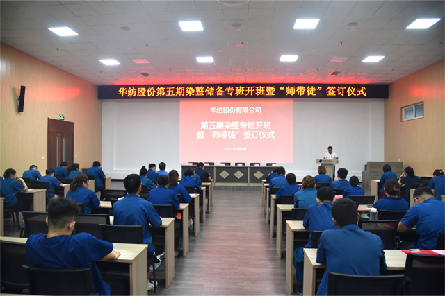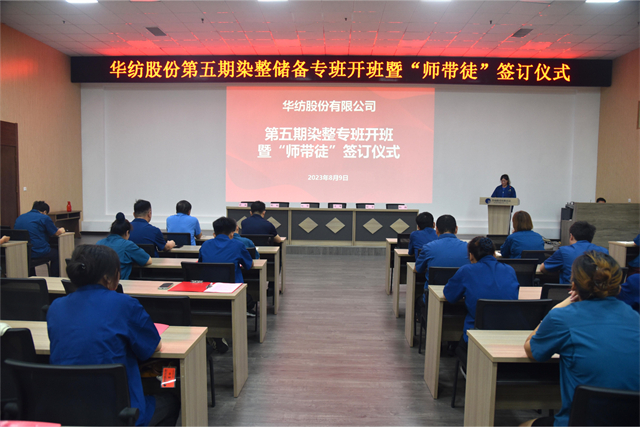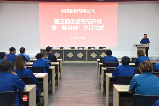 導(dǎo)讀:8月9日,公司舉行第五期染整技術(shù)儲(chǔ)備人才專班開(kāi)班暨“師帶徒”簽訂儀式。