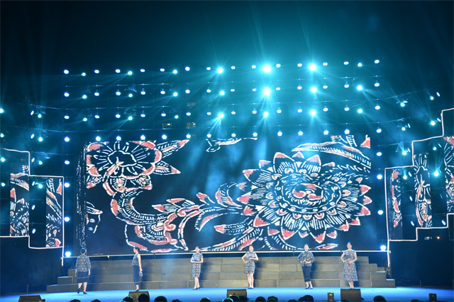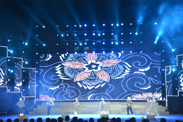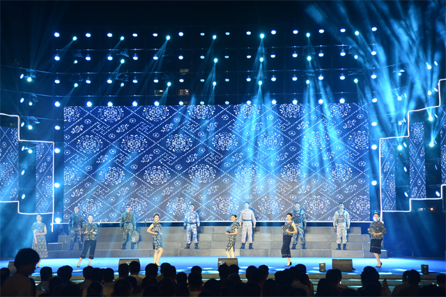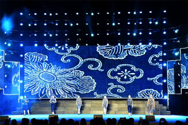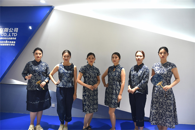 此次文藝匯演中,公司參演人員盡著由公司設(shè)計生產(chǎn)的服裝產(chǎn)品。藍印花布系列服飾以藍白分明、清新明質(zhì)、純真素樸、典雅大方的藝術(shù)特點體現(xiàn)了濱州大地濃厚的文化底蘊。