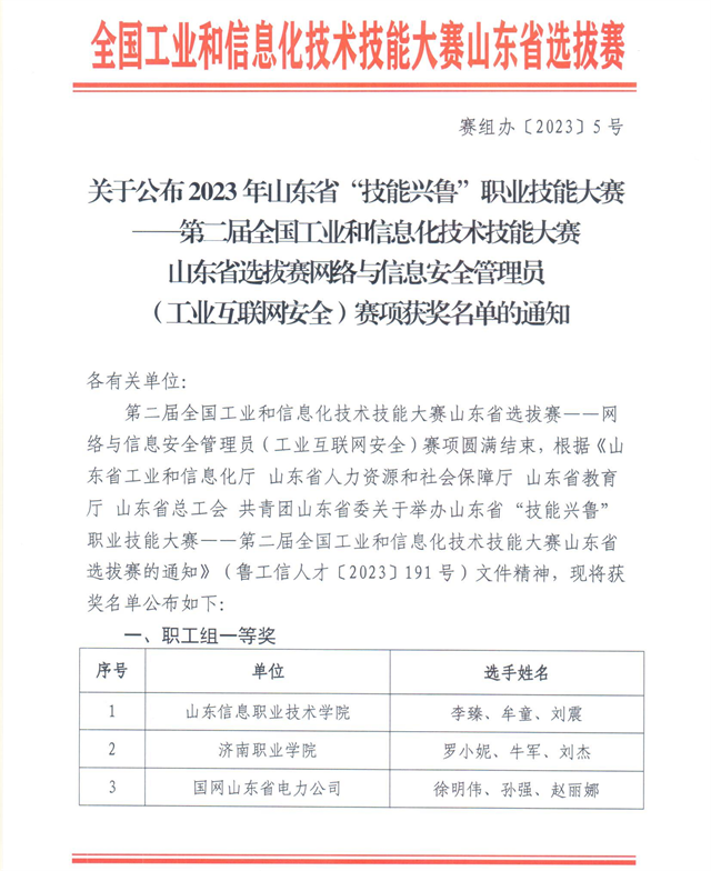 近日,2023年山東省“技能興魯”職業(yè)技能大賽——第二屆全國(guó)工業(yè)和信息化技術(shù)技能大賽山東省選拔賽網(wǎng)絡(luò)與信息安全管理員(工業(yè)互聯(lián)網(wǎng)安全)賽項(xiàng)圓滿(mǎn)結(jié)束,公司互聯(lián)信息部信息中心信息安全管理員崔乘耀、張濤、孫浩三名員工,賽前積極備戰(zhàn),努力研究網(wǎng)絡(luò)安全前沿技術(shù),賽中通力合作,最終榮獲賽項(xiàng)職工組二等獎(jiǎng)。