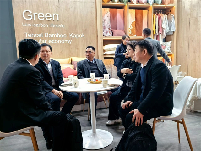 展會首日,中國紡織工業(yè)聯(lián)合會副會長楊兆華等領(lǐng)導專程到華紡股份展位參觀指導。領(lǐng)導們認真聽取了家紡公司總經(jīng)理成汝海對家紡產(chǎn)品的介紹,仔細觀看了解了各類展品。楊兆華副會長對華紡股份有限公司在產(chǎn)業(yè)升級、產(chǎn)品結(jié)構(gòu)調(diào)整方面取得的成績給予了充分肯定,希望公司繼續(xù)加大研發(fā)投入,提升產(chǎn)品科技含量和附加值,進一步加強品牌建設(shè),提高中國家紡產(chǎn)品在國際市場的知名度和影響力。