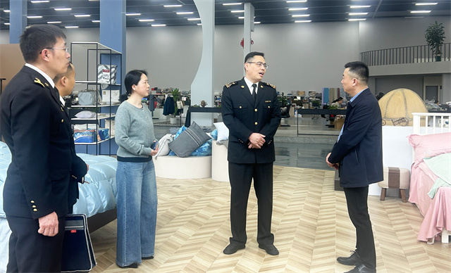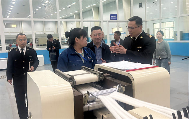 4月16日,濱州海關(guān)黨委書記、關(guān)長李光一行來公司參觀調(diào)研。濱州海關(guān)綜合業(yè)務(wù)一科科長劉金輝,綜合業(yè)務(wù)二科副科長朱士帥陪同調(diào)研。公司黨委委員、總經(jīng)理閆英山,市場運(yùn)營部綜合事務(wù)管理主任楊霞,華紡國際進(jìn)口部經(jīng)理韓黎明,服裝面料業(yè)務(wù)經(jīng)理王新東,儲運(yùn)部主管楊箐箐陪同。