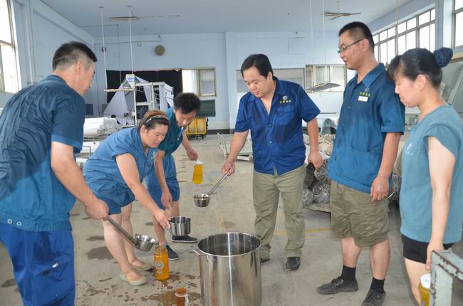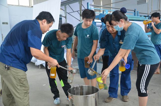 7月29日,當(dāng)日濱州市溫度高達(dá)35℃,華紡股份有限公司管理者將冰好的橘子粉化制飲品到一線生產(chǎn)崗位,一一分發(fā)到正在當(dāng)班的員工水杯中,緩解高溫為員工帶來的酷熱,送上一份清涼和關(guān)愛。