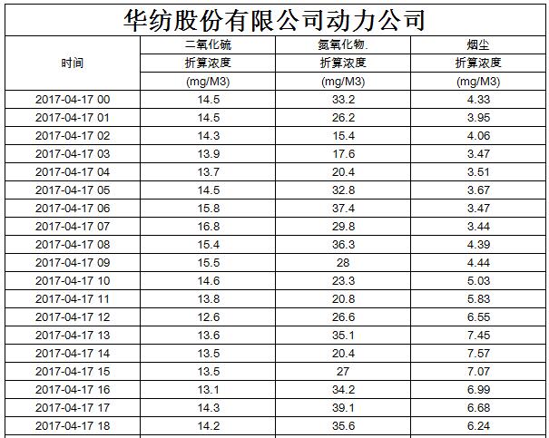 煙氣排放數(shù)據(jù)信息公開2017.4.17數(shù)據(jù)