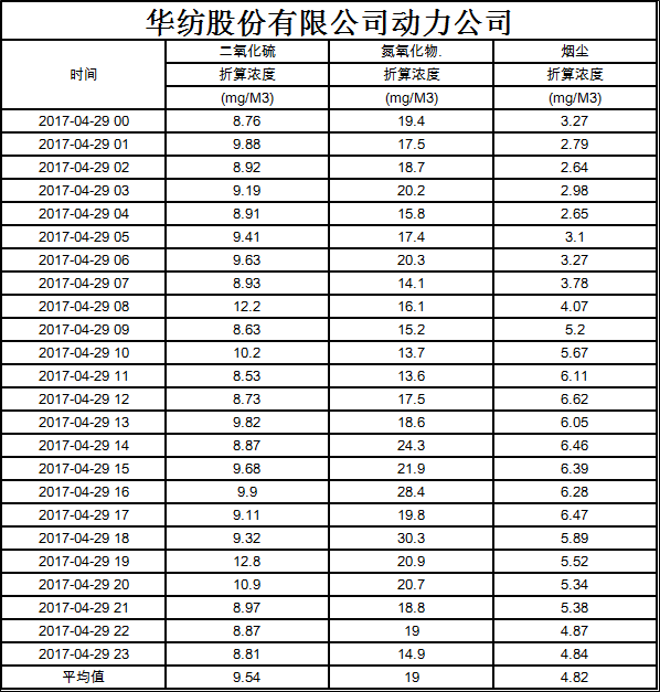煙氣排放數(shù)據(jù)信息公開2017.4.29數(shù)據(jù)
