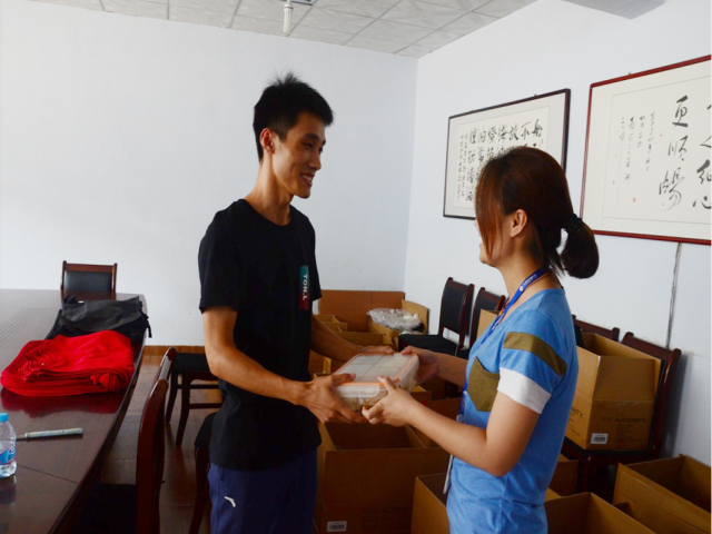 “吳青凱,生日快樂”,正在車間整理貨物的服裝公司業(yè)務(wù)員吳青凱聽到有人叫自己,一回身,只見營(yíng)銷體系團(tuán)支部書記姜琳紅把一份工作餐遞到手里??粗矍暗捏@喜,吳青凱開心的說:“原來(lái)今天是我的生日啊,謝謝公司對(duì)我們單身員工的關(guān)愛”。