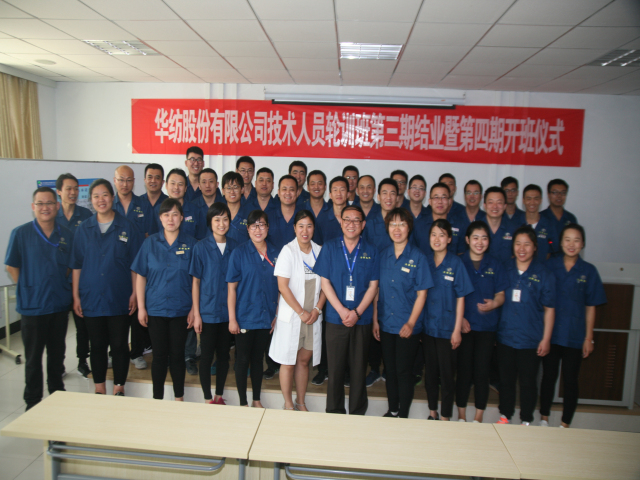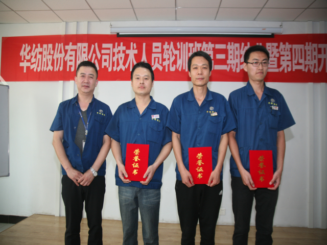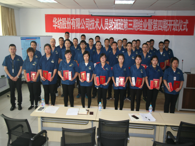 6月18日,公司專業(yè)技術(shù)輪訓(xùn)班第三期結(jié)業(yè)暨第四期開班儀式,在公司工程技術(shù)研究院舉行。儀式上,工程技術(shù)研究院副院長孫紅玉對第三期輪訓(xùn)工作進(jìn)行了總結(jié);總工程師羅維新宣讀了《關(guān)于對染整專業(yè)技術(shù)培訓(xùn)班(第三期)馬士國等35人準(zhǔn)予結(jié)業(yè)的通報(bào)》、《關(guān)于對染整專業(yè)技術(shù)培訓(xùn)班(第三期)優(yōu)秀團(tuán)隊(duì)、優(yōu)秀學(xué)員的表彰決定》、《關(guān)于對染整專業(yè)技術(shù)培訓(xùn)班(第四期)學(xué)員組成的通報(bào)》;總經(jīng)理閆英山為第三期輪訓(xùn)班結(jié)業(yè)學(xué)員頒發(fā)結(jié)業(yè)證書,為優(yōu)秀團(tuán)隊(duì)花二車間小組及馬士國、李義、陳愛民等三名優(yōu)秀學(xué)員頒發(fā)獎狀證書,為第四期學(xué)員頒發(fā)了專業(yè)學(xué)習(xí)書籍;王金亮、馬士國、商曉峰分別代表往期學(xué)員、本期學(xué)員和下期學(xué)員發(fā)言;公司黨委書記、董事長王力民圍繞堅(jiān)持“求學(xué)、求知、求真、求實(shí)”的作風(fēng)信條做了重要講話。