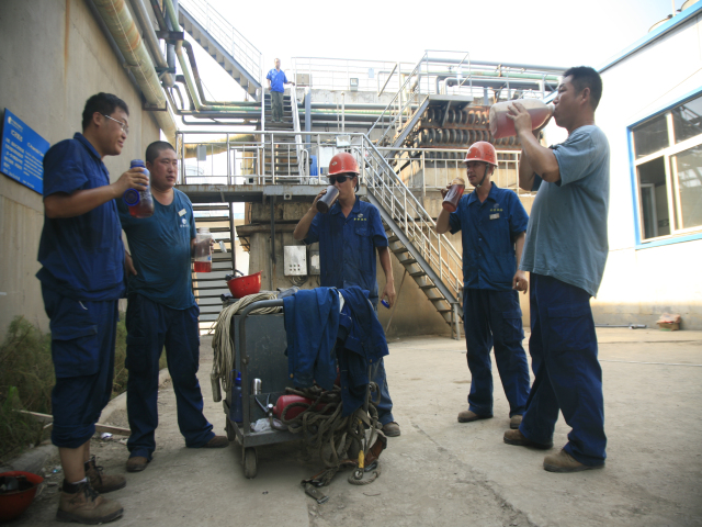 公司污水處理改造工程近來正在緊鑼密鼓地推進(jìn),大家盯靠在現(xiàn)場,實在太渴了,就咕咚咕咚喝一通綠豆湯。他們的目標(biāo)是:保質(zhì)保量,全力投入,爭取提前完成這項重點工程。