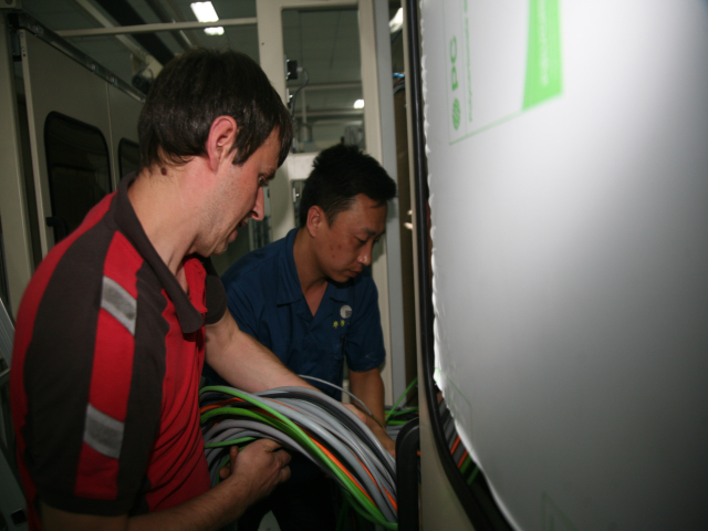 圖為安裝引進設(shè)備的現(xiàn)場情形。