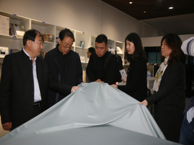 參加調研座談的還有:省紡織服裝行業(yè)協(xié)會副會長王淼、陳升,執(zhí)行秘書長張春華,科技部專員劉漢慶;北京中紡永景投資有限公司策劃總監(jiān)譚軍、運營總監(jiān)李曉放、運營專員白旭;北京盛世嘉年國際文化發(fā)展有限公司CEO陳虎、項目經(jīng)理王嘉韜;公司副總工程師王國棟、李春光、孫紅玉等。