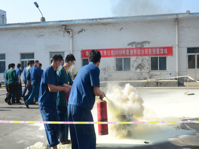 4月27日,公司分別在總廠區(qū)和科技產(chǎn)業(yè)園舉行了2018年度綜合應(yīng)急預(yù)案演練,公司各部門12個消防支隊200余名員工參加演練。