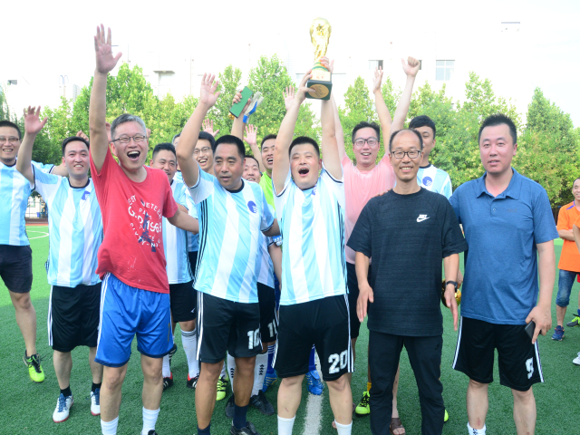 本次比賽共有7支代表隊(duì)近百余名運(yùn)動(dòng)員參與,同時(shí)吸引了近千余人次員工啦啦隊(duì)到現(xiàn)場(chǎng)觀看比賽。經(jīng)過7輪21場(chǎng)次較量,營(yíng)銷代表隊(duì)以6戰(zhàn)5勝1平積16分的不敗戰(zhàn)績(jī),獲得2018年度華紡男子足球超級(jí)聯(lián)賽冠軍、熱力代表隊(duì)獲得亞軍、花一代表隊(duì)獲得季軍。“最佳射手”被營(yíng)銷代表隊(duì)崔成龍以6場(chǎng)比賽進(jìn)8球的戰(zhàn)績(jī)獲得,營(yíng)銷代表隊(duì)李鑫昊獲得“最佳球員”殊榮,花一代表隊(duì)邢聰斬獲“最佳門將”。