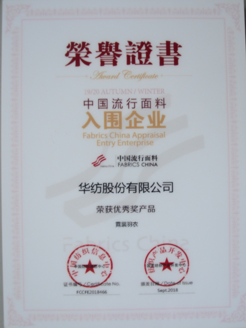日前,公司在2018年中國國際面料設(shè)計(jì)大賽、第40屆(2019/20秋冬)中國流行面料入圍評(píng)審中再獲佳績(jī),被授予“2019/20秋冬流行面料入圍企業(yè)”稱號(hào),由席亞偉、戚芳設(shè)計(jì)的“霓裳羽衣”面料產(chǎn)品榮獲大賽優(yōu)秀獎(jiǎng)。