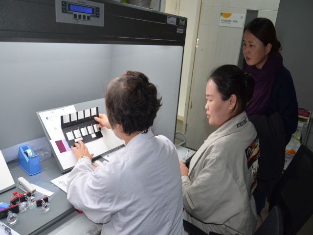 面料公司經(jīng)理王超、家紡公司經(jīng)理成汝海、營銷管理部主任楊霞等,與天祥集團相關(guān)管理者及專業(yè)技術(shù)人員,圍繞檢測服務、標準統(tǒng)一等內(nèi)容進行了座談交流,公司檢測中心檢測員畢雨和天祥集團專業(yè)人員在現(xiàn)場進行了目光比對,隨后,一起參觀了天祥集團新實驗室。天祥集團紡織品類總經(jīng)理龔澎,天祥集團相關(guān)專家參與座談交流活動。此次活動作為雙方年度系列交流活動之一,體現(xiàn)出雙方在產(chǎn)品檢測、文化交流等方面緊密合作的再推進,對促進雙方共同發(fā)展具有積極的推動作用。