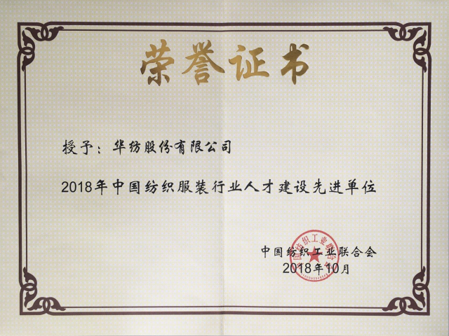 來自不同領(lǐng)域的專家學(xué)者圍繞紡織服裝人才建設(shè)進行了發(fā)言,同時,為進一步推進紡織行業(yè)“知識更新工程”人才建設(shè)培訓(xùn)工作,加強紡織服裝人才隊伍建設(shè),促進行業(yè)轉(zhuǎn)型升級發(fā)展,大會還對2018年中國紡織行業(yè)人才建設(shè)先進單位個人進行了表彰。公司憑借在人才建設(shè)上取得的成績,被授予“2018年中國紡織服裝行業(yè)人才建設(shè)先進單位”稱號,副總經(jīng)理盛守祥獲得“2018年中國紡織服裝行業(yè)人才建設(shè)先進個人”稱號。