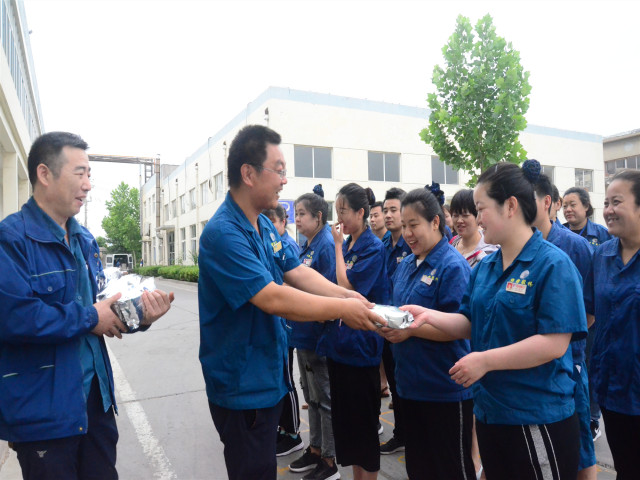 進入5月下旬以來,魯北地區(qū)氣溫逐漸升高,生產(chǎn)企業(yè)的防暑降溫工作提到了議事日程。公司為做好此項工作,采取多措并舉,在最大限度改善生產(chǎn)作業(yè)環(huán)境的同時,為員工發(fā)放夏季工裝等用品,加大向一線生產(chǎn)車間發(fā)送西紅柿湯、綠豆湯等降溫飲品,以確保高溫時節(jié)員工的體能需要和身心健康。